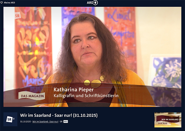 Am vergangenen Freitag, 31. Oktober, wurde in der Sendung "Wir im Saarland – Saar nur" ein Bericht über meine Arbeit und meinen Unterricht von Erwachsenen und Kindern in der Stiftung Schriftkultur e. V. ausgestrahlt. Gedreht wurde am 28. August unter der Federführung von Barbara Lindahl und Kameramann Alex. In der Mediathek des Saarländischen Rundfunks kann die Sendung unter diesem Link angesehen werden. Beginn ab der 17. Minute. Viel Spaß!