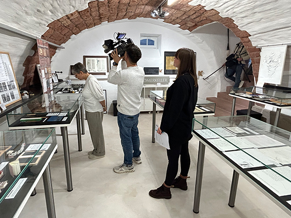 Nach dem Dreh und dem Interview wurde Birgit Herold im Museum für Kalligrafie und Handschrift im Gewölbekeller