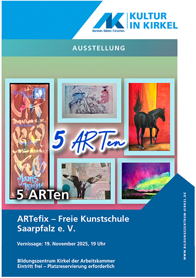 Fünf Künstlerinnen und Dozentinnen an der Freien Kunstschule Artefix in Homburg stellen aus: Bernadette Thormann – Dorothea Walz – Eva Maria Kohl – Jeanette Raber –