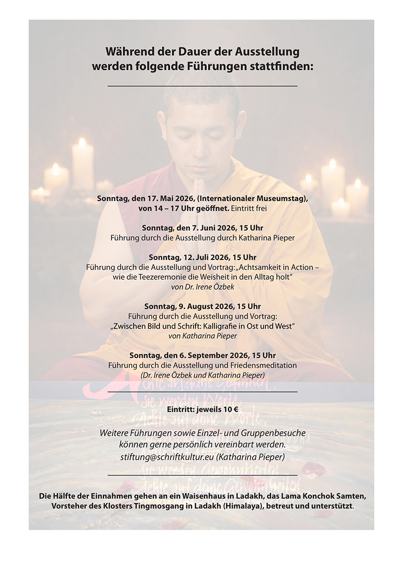 *** Sonntag, 4. Mai 2025, 14 bis 17 Uhr Tag der Kalligrafie *** Sonntag, 18. Mai 2025, 14 bis 17 Uhr *** Sonntag, 22. Juni 2025, 14 bis 17 Uhr