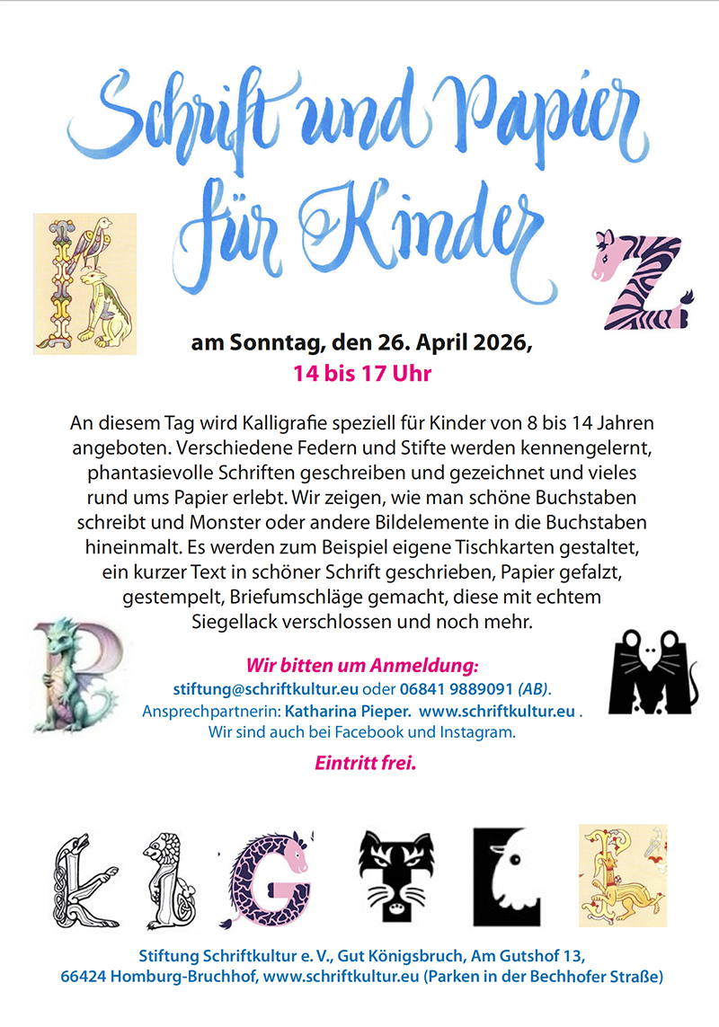 Schrift und Papier für Kinder bitte per E-Mail anmelden: HIER |