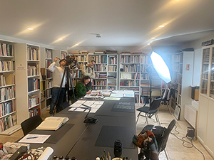 20.01.2023 Sie seit September 2022 andauernden Sanierungsarbeiten im Gewölbekeller zur Verringerung der hohen Luftfeuchtigkeit sind im wesentlichen beendet. Die Wände wurden mit einer Kapillarsperre versehen, was einen großen Aufwand bedeutete. Doch er hat sich gelohnt, und das Museum kann nun auch wieder besucht werden. Eine Gruppe aus Kleinottweiler wurde kürzlich von Katharina Pieper durch das Museum und die Galerie geführt und mit der weiten Welt der Schrift vertraut gemacht. Ein neuer Ausstellungsbereich zur Schriftkunst in Asien und im Orient ergänzt die ständige Sammlung und die Dauerausstellung von Jean Larcher. Mit Hilfe von Sascha Boßlet, seinem Sohn Till und Gerätschaften aus dem Deutschen Zeitungsmuseum stehen seit heute auch die großen, schweren Archivschränke wieder an ihrem Platz. |