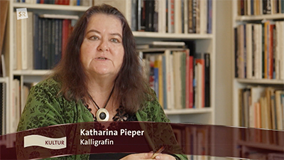 28.11.2025 Am 19.11.25 wurde in der Sendung "Wir im Saarland – Kultur" ein Bericht über Birgit Herold, Autorin des Buches "Die Schreiberin" ausgestrahlt. Katharina Pieper hat darin kalligrafisch mitgewirkt und sich zuvor in die Handschrift der mittelalterlichen Schreiberin Clara Hätzlerin, eine Kanzleibastarda, eingearbeitet. Die Dreharbeiten fanden eine Woche zuvor in der Bibliothek der Stiftung Schriftkultur statt und haben unter der Regie von Roswitha Böhm mit ihrem Kamerateam viel Spaß gemacht. Birgit Herold war sehr berührt, dass die Hauptdarstellerin ihres Buches durch die schreibende Hand von Katharina Pieper sozusagen wieder zum Leben erweckt wurde. Der Bericht ist in der SR-Mediathek unter diesem Link zu sehen: H I E R Der Beitrag kann einzeln angeklickt werden (4. von links), ebenso kann die komplette Sendung mit der Ansage von Verena Sierra angeschaut werden. Den Schluss der Sendung ansehen!!! |